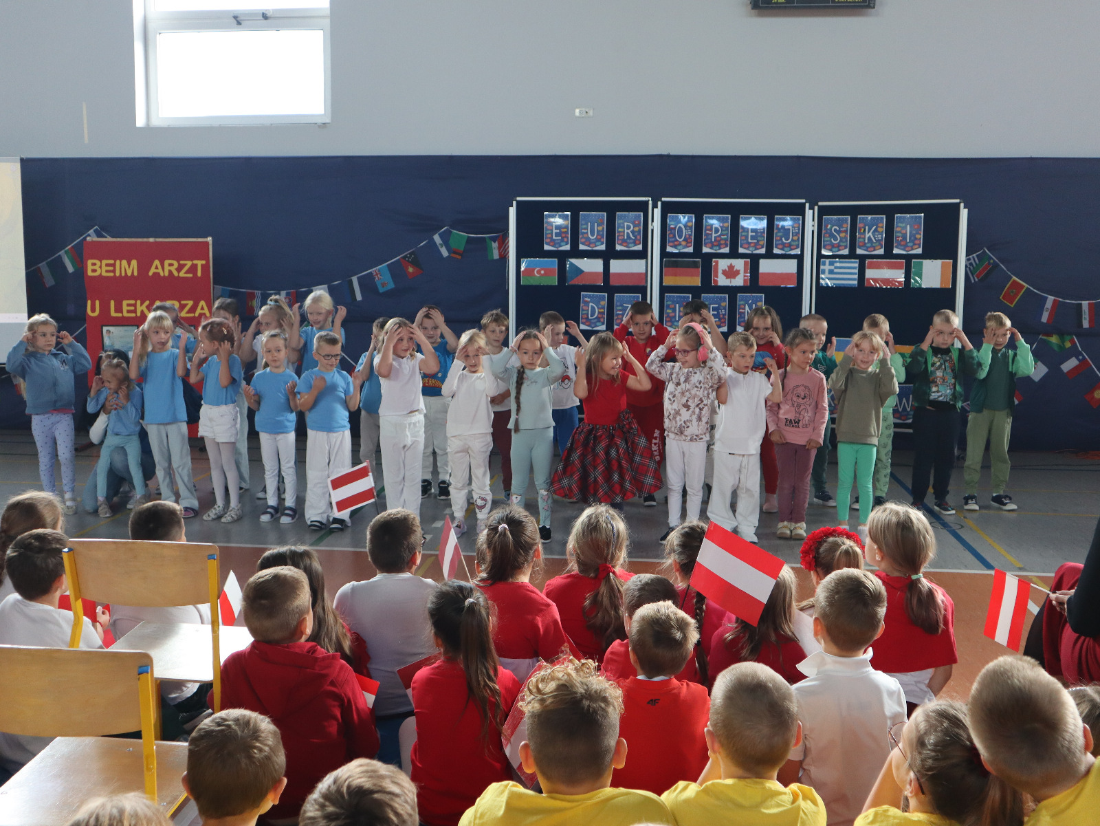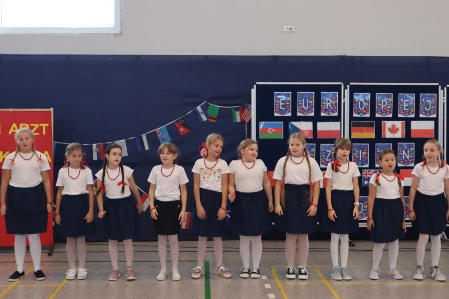 26 września świętowaliśmy różnorodność językową i kulturową Europy! Było kolorowo i radośnie – śpiewaliśmy, recytowaliśmy poezję w języku angielskim i niemieckim, a także odegraliśmy scenki z życia codziennego, m.in. u lekarza czy w restauracji. Poznaliśmy „magiczne słowo” dziękuję w wielu językach europejskich i przekonaliśmy się, że znajomość języków naprawdę otwiera świat. Nie zabrakło też uczty dla podniebienia – mogliśmy spróbować potraw i smakołyków z różnych zakątków świata.