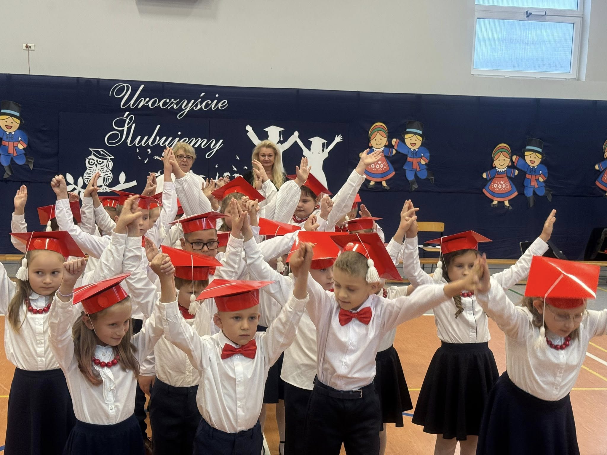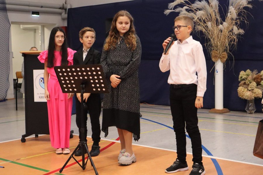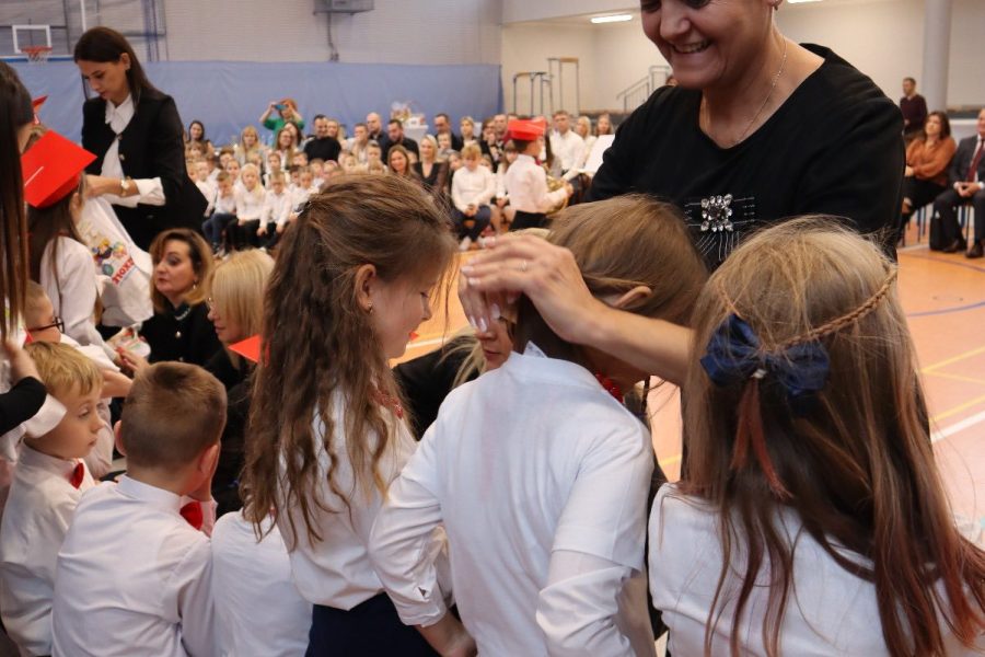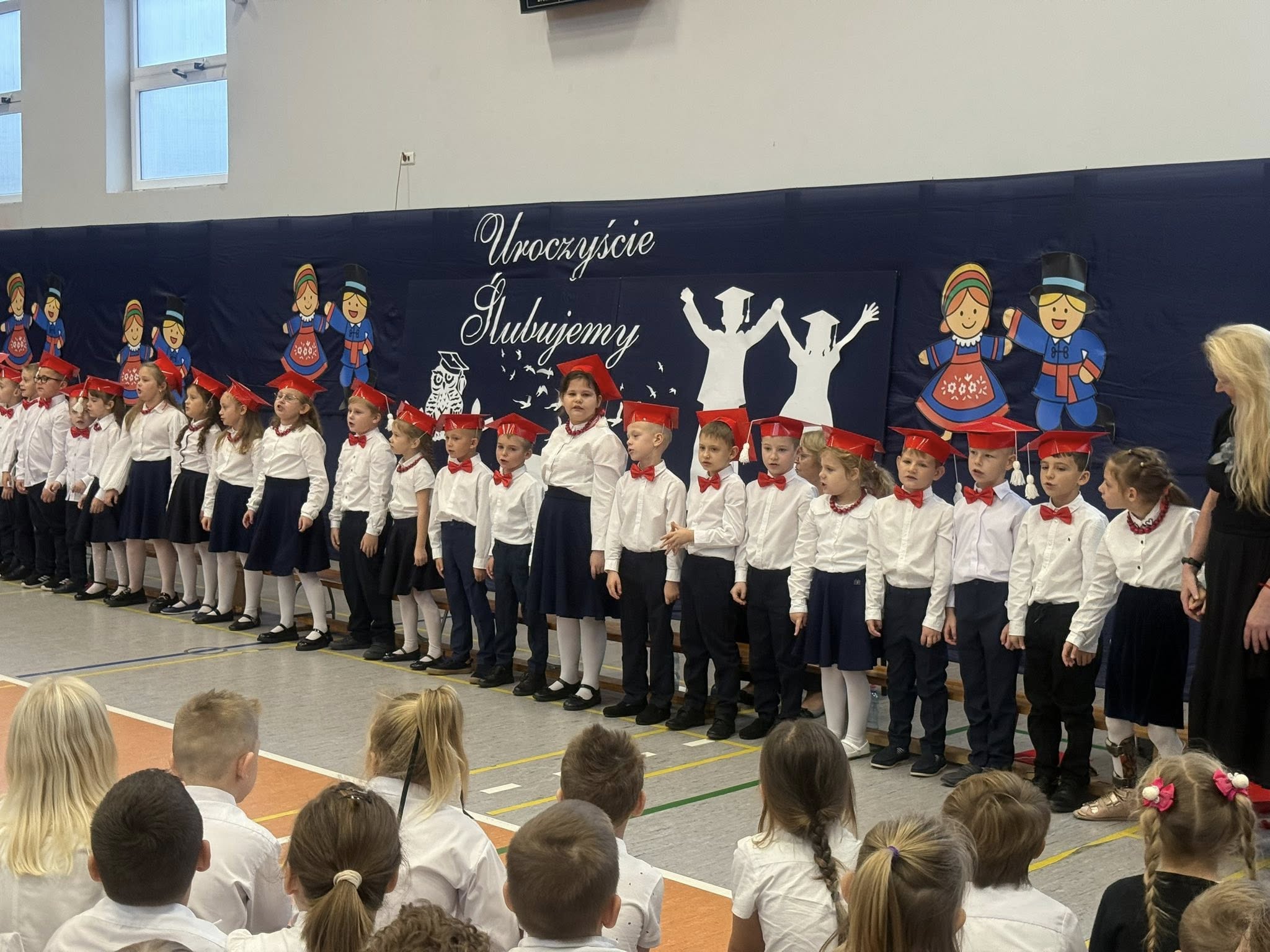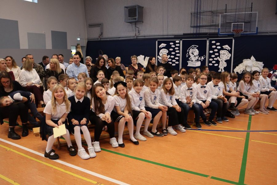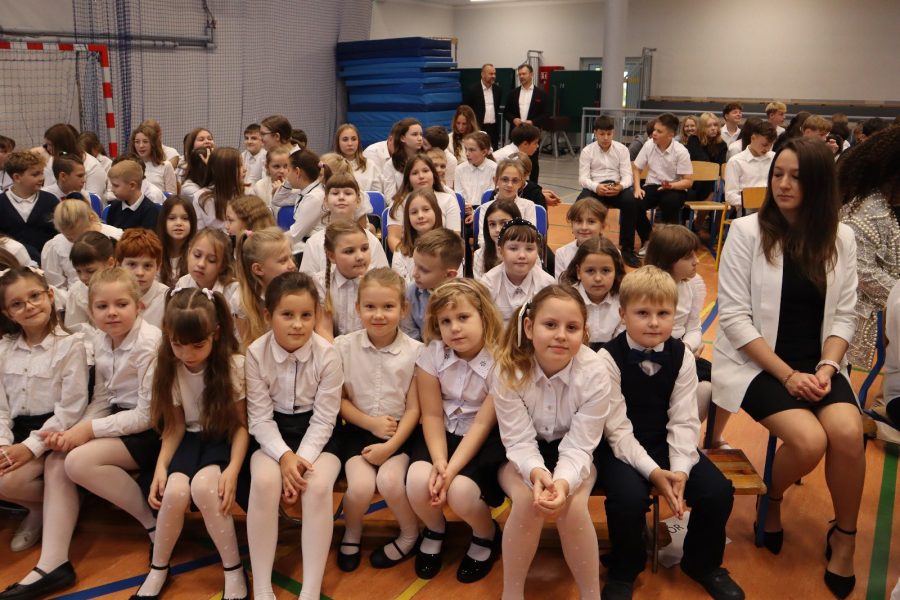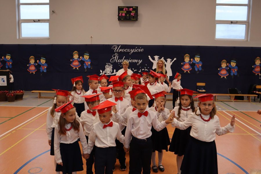 Dziś w naszej szkole odbyło się uroczyste ślubowanie pierwszoklasistów. To wyjątkowe wydarzenie na długo pozostanie w pamięci uczniów, rodziców i nauczycieli. Pierwszoklasiści z dumą zaprezentowali swoje umiejętności — pięknie recytowali wiersze, śpiewali piosenki i tańczyli, wzruszając i zachwycając publiczność. Na szczególną uwagę zasługuje fakt, że dzieci w swoich występach nawiązały do tradycji i kultury regionu Kujaw, swojej małej ojczyzny, prezentując m.in. kujawiaczka, którego zatańczyły i zaśpiewały z ogromnym zaangażowaniem. Serdecznie dziękujemy wszystkim za obecność, życzenia, prezenty i upominki. Był to dzień pełen magii, wzruszeń i radości, który z pewnością na długo pozostanie w naszej pamięci.