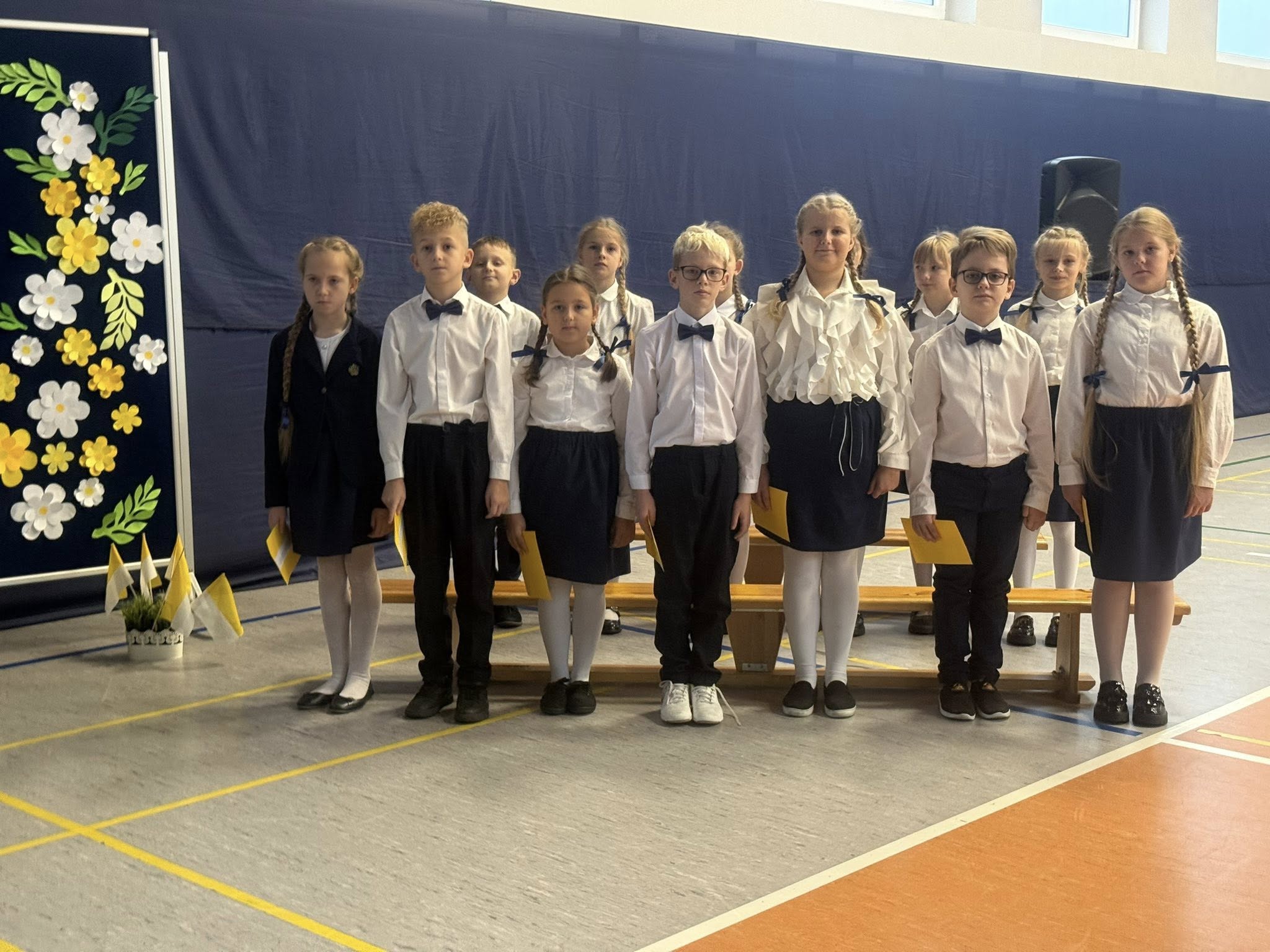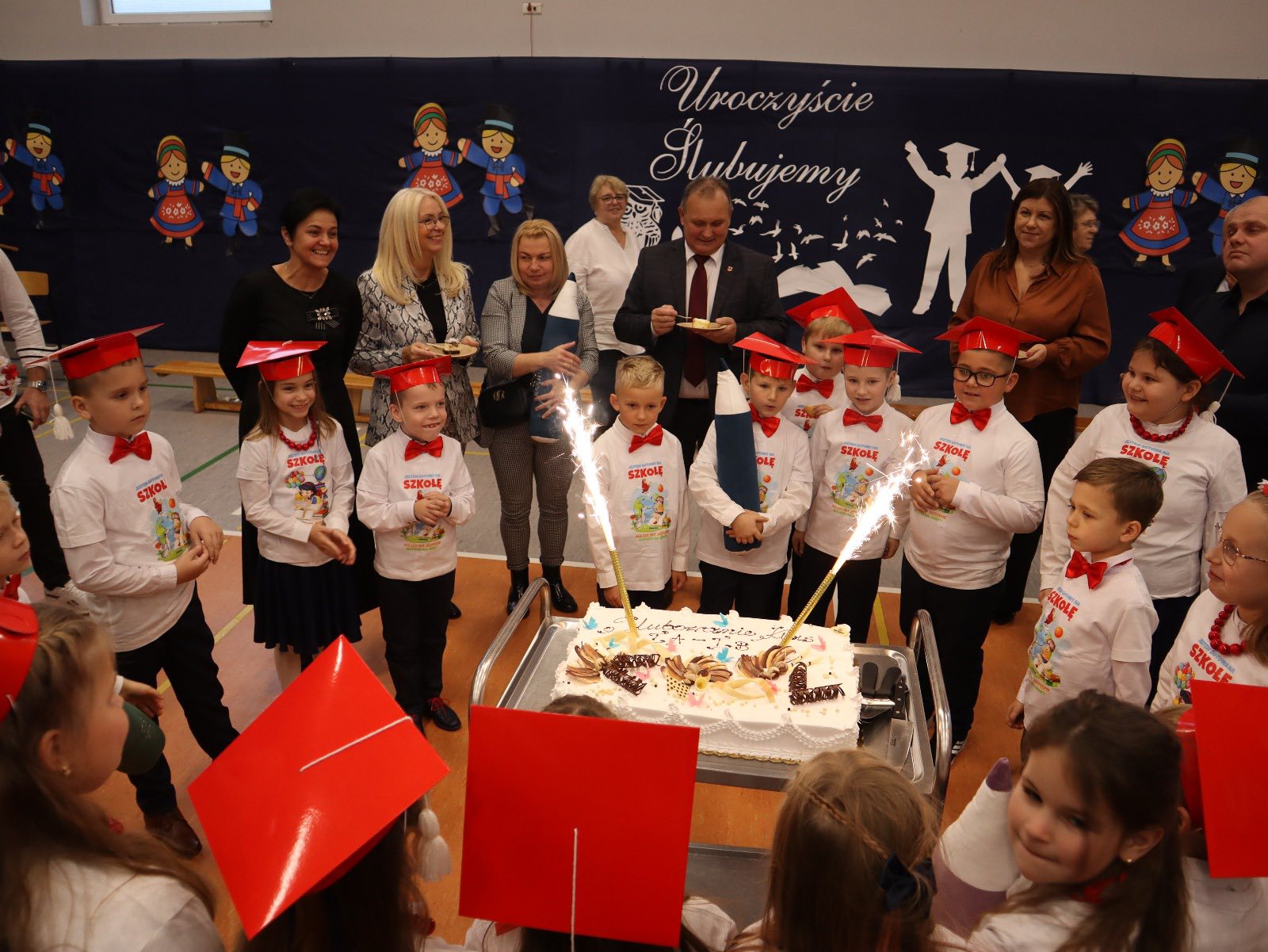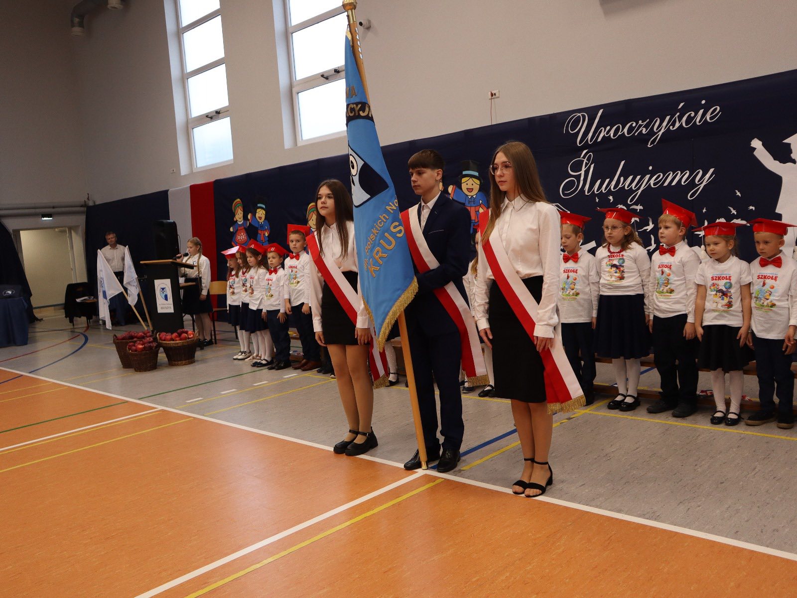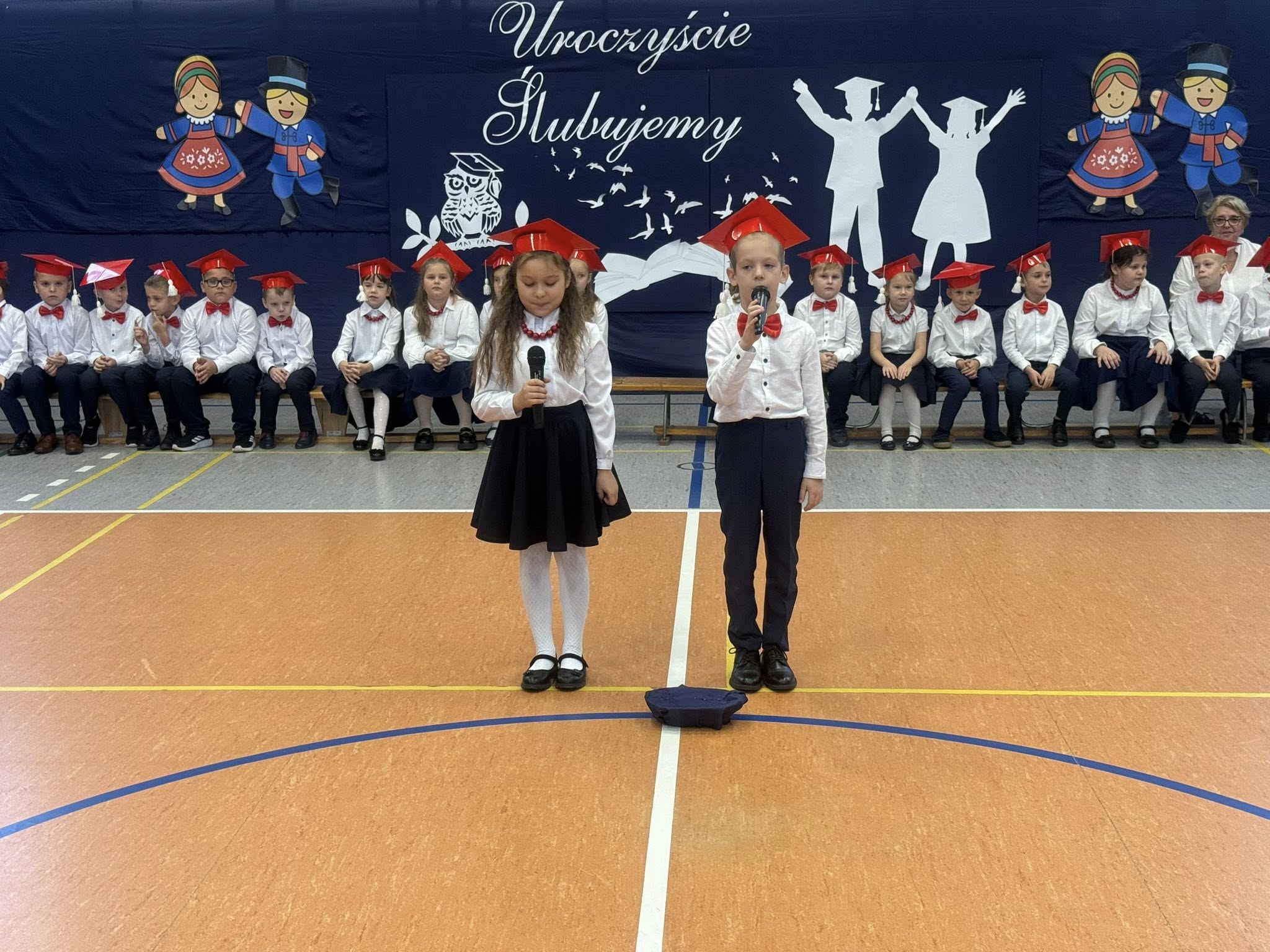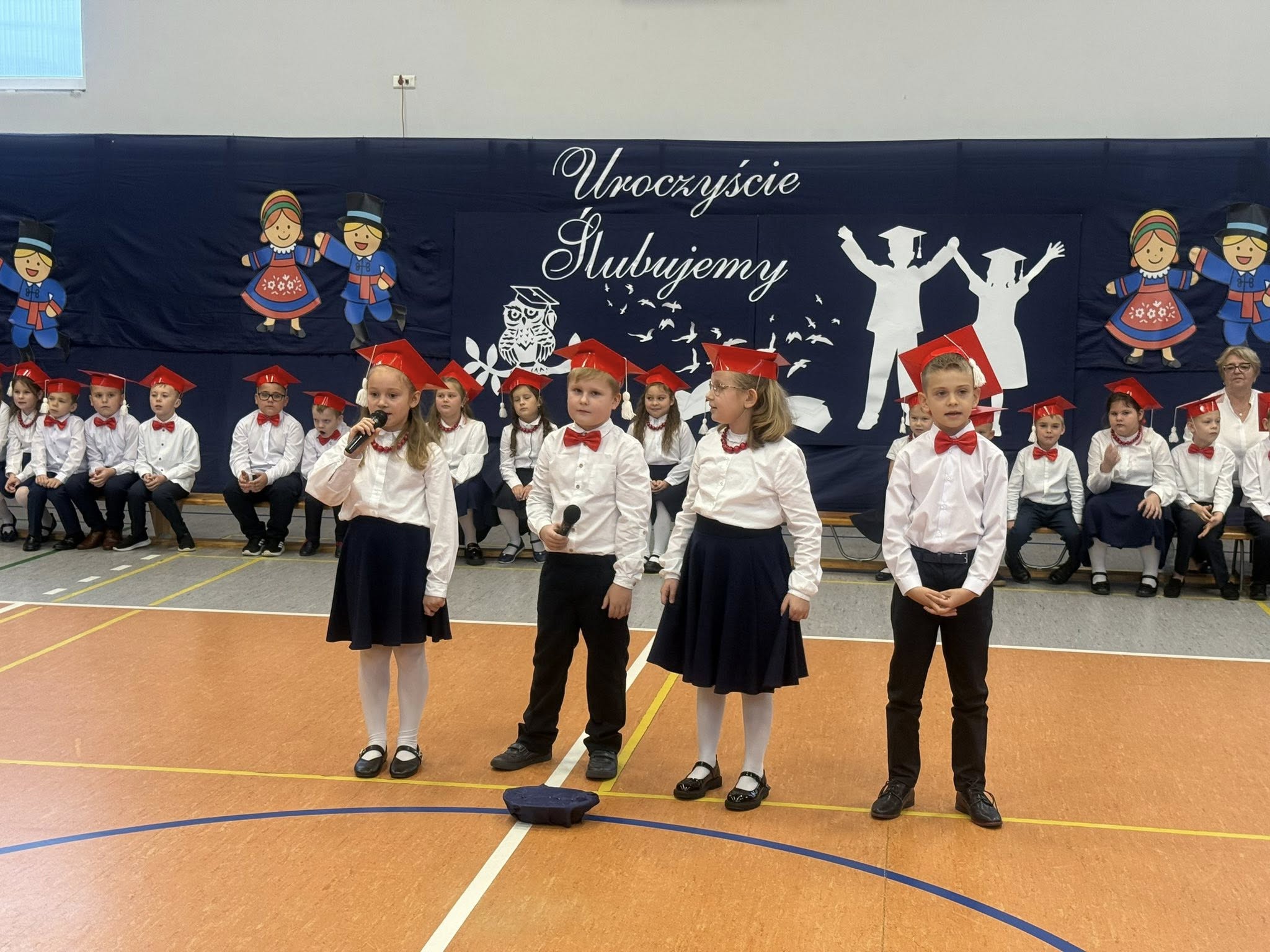 Dziś w naszej szkole odbyło się uroczyste ślubowanie pierwszoklasistów. To wyjątkowe wydarzenie na długo pozostanie w pamięci uczniów, rodziców i nauczycieli. Pierwszoklasiści z dumą zaprezentowali swoje umiejętności — pięknie recytowali wiersze, śpiewali piosenki i tańczyli, wzruszając i zachwycając publiczność. Na szczególną uwagę zasługuje fakt, że dzieci w swoich występach nawiązały do tradycji i kultury regionu Kujaw, swojej małej ojczyzny, prezentując m.in. kujawiaczka, którego zatańczyły i zaśpiewały z ogromnym zaangażowaniem. Serdecznie dziękujemy wszystkim za obecność, życzenia, prezenty i upominki. Był to dzień pełen magii, wzruszeń i radości, który z pewnością na długo pozostanie w naszej pamięci.