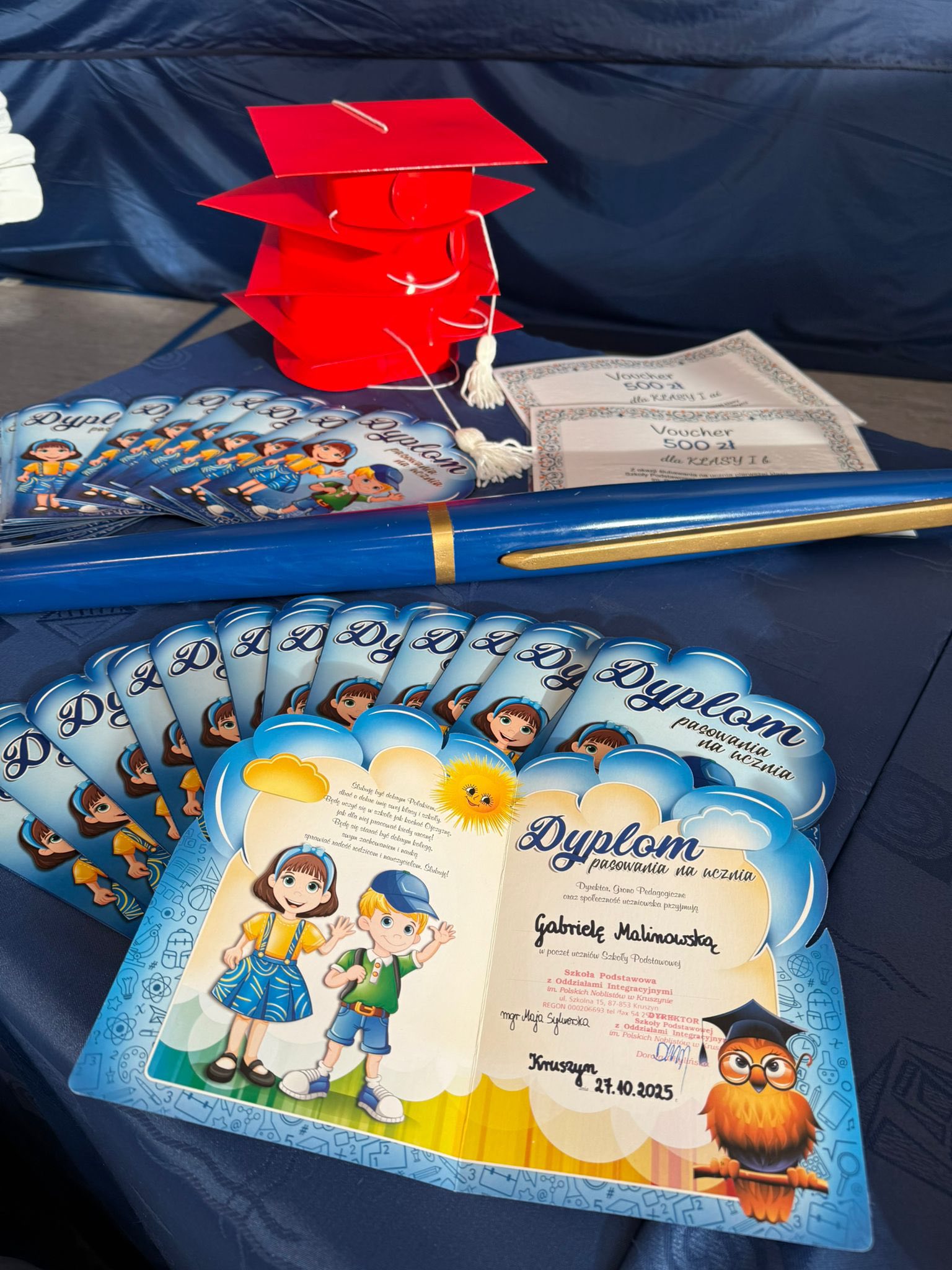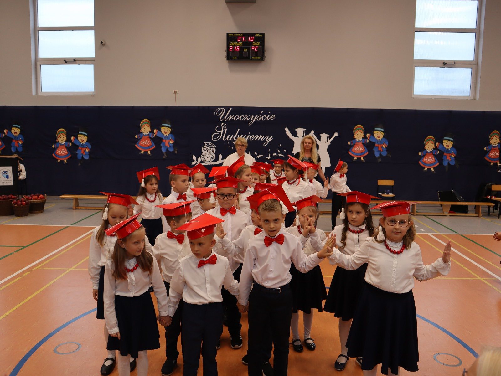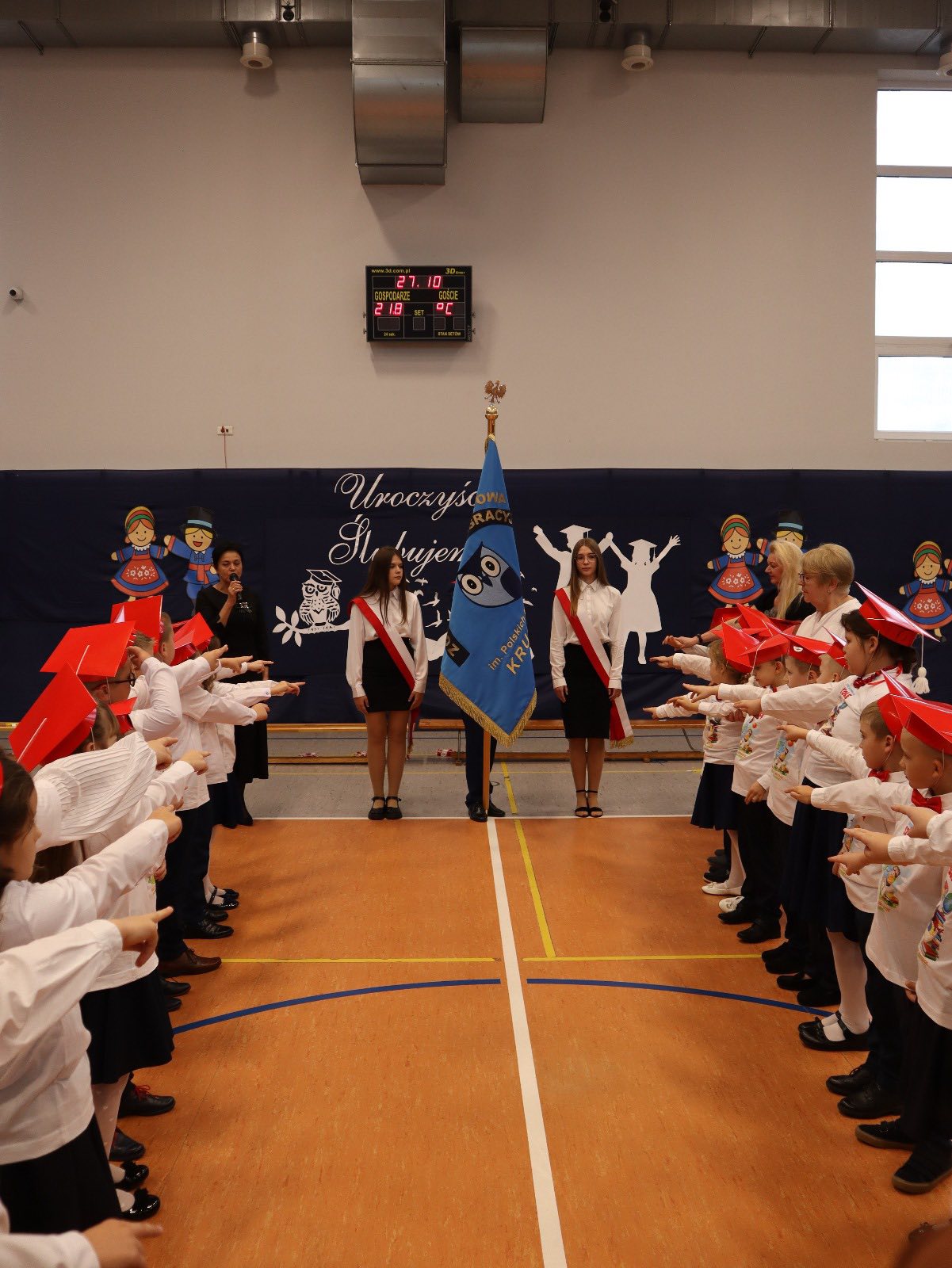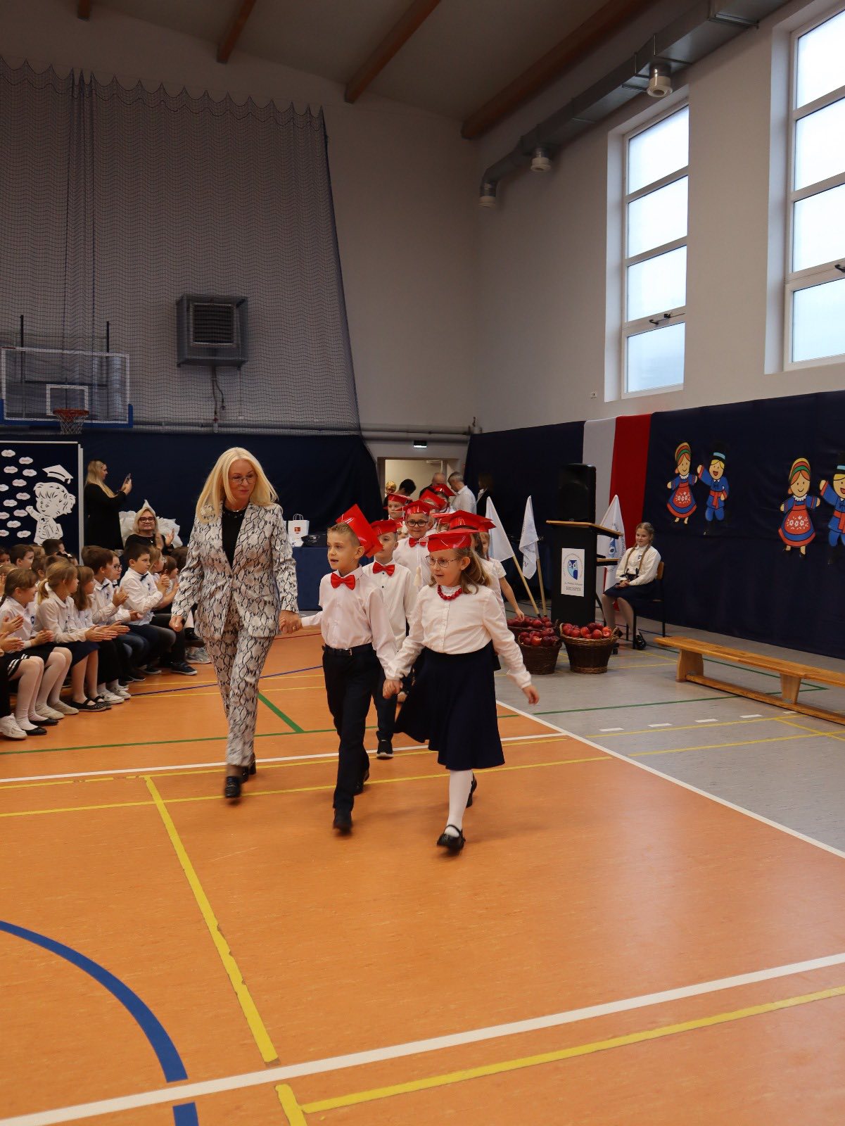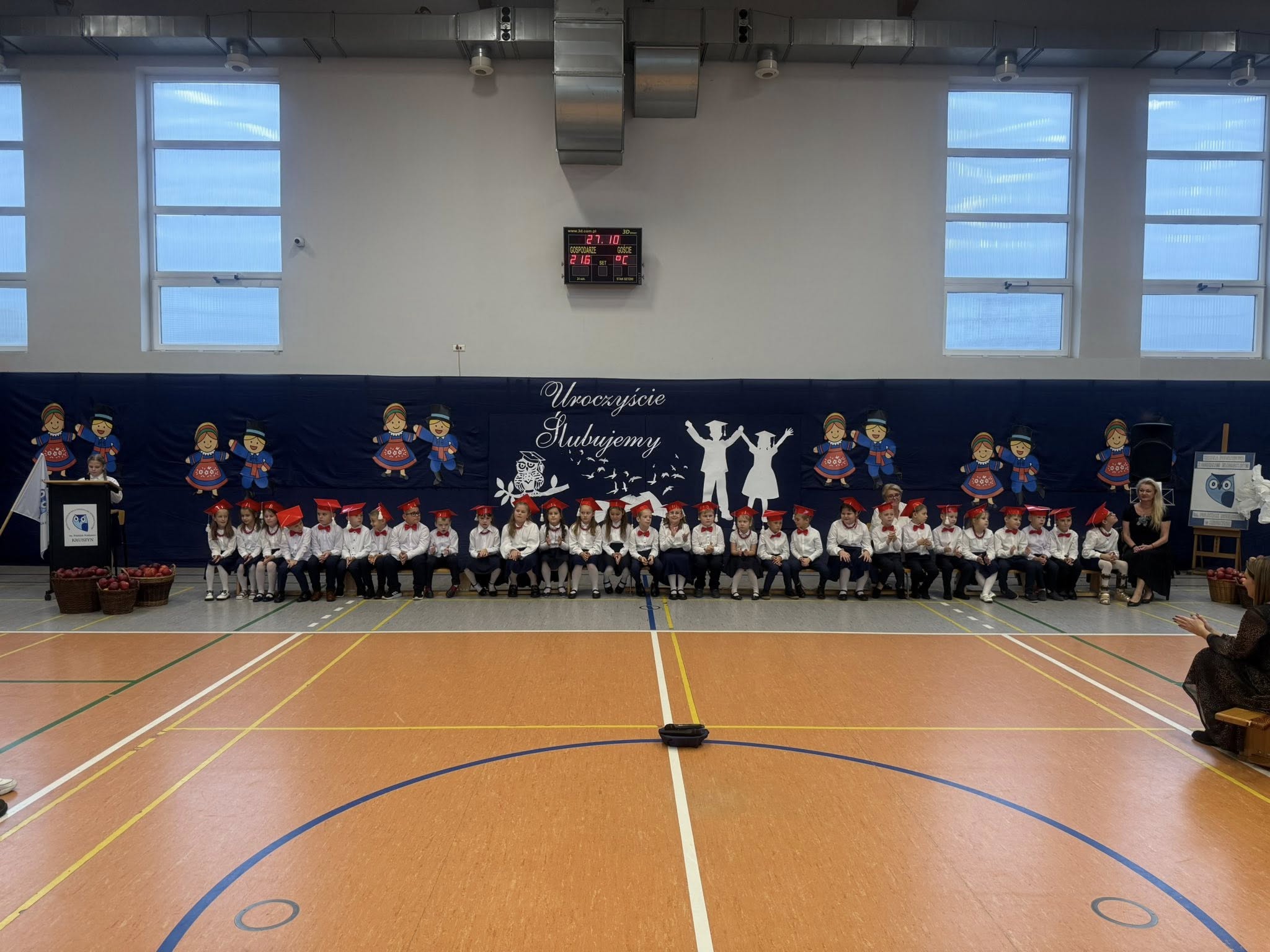 Dziś w naszej szkole odbyło się uroczyste ślubowanie pierwszoklasistów. To wyjątkowe wydarzenie na długo pozostanie w pamięci uczniów, rodziców i nauczycieli. Pierwszoklasiści z dumą zaprezentowali swoje umiejętności — pięknie recytowali wiersze, śpiewali piosenki i tańczyli, wzruszając i zachwycając publiczność. Na szczególną uwagę zasługuje fakt, że dzieci w swoich występach nawiązały do tradycji i kultury regionu Kujaw, swojej małej ojczyzny, prezentując m.in. kujawiaczka, którego zatańczyły i zaśpiewały z ogromnym zaangażowaniem. Serdecznie dziękujemy wszystkim za obecność, życzenia, prezenty i upominki. Był to dzień pełen magii, wzruszeń i radości, który z pewnością na długo pozostanie w naszej pamięci.