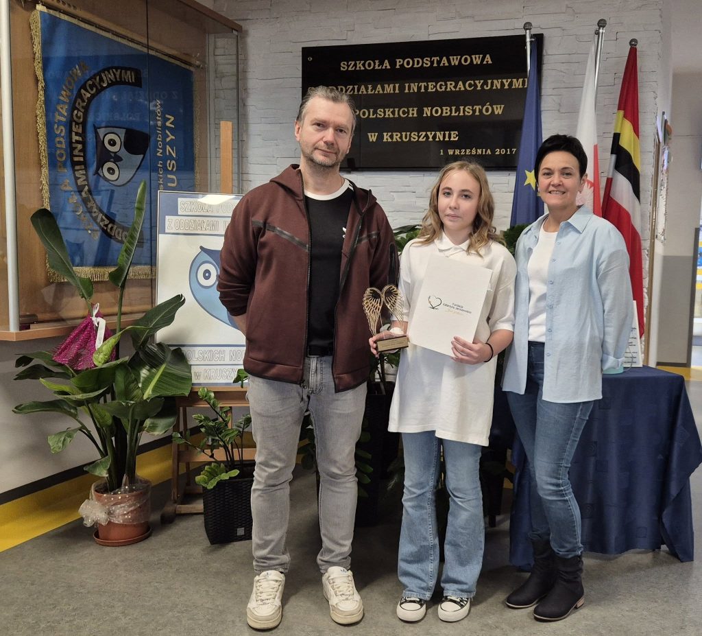 Uczennica Szkoły Podstawowej z Oddziałami Integracyjnymi im. Polskich Noblistów w Kruszynie ANNA NOWACKA zajęła I miejsce w II OGÓLNOPOLSKIM KONKURSIE RECYTATORSKIM „BUDUJEMY MOSTY SŁOWEM”. Gratulujemy!