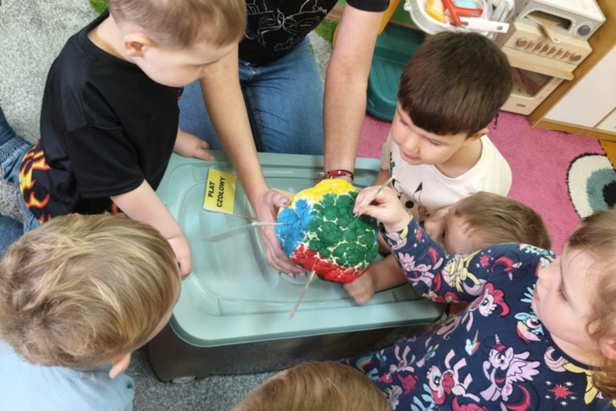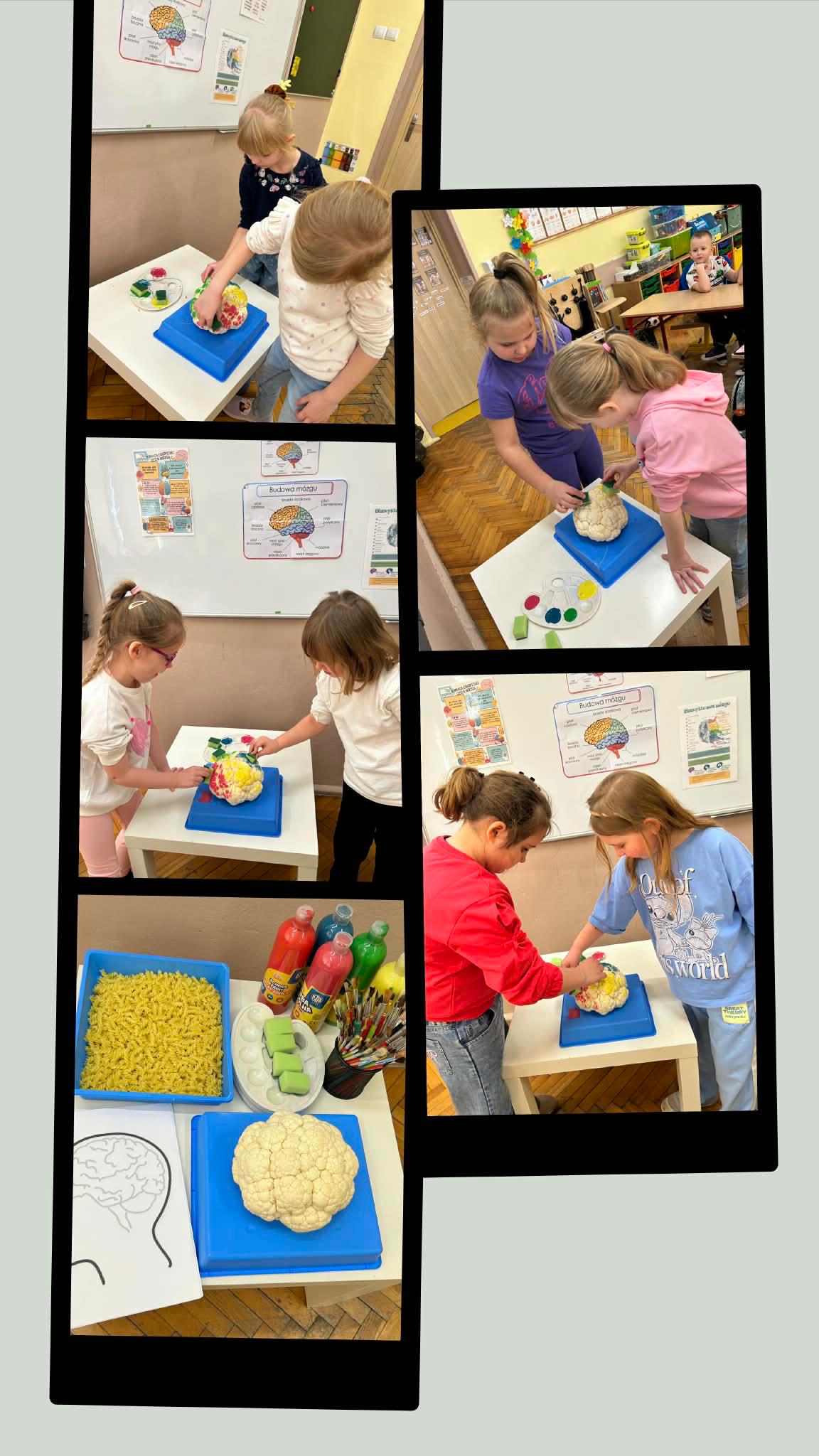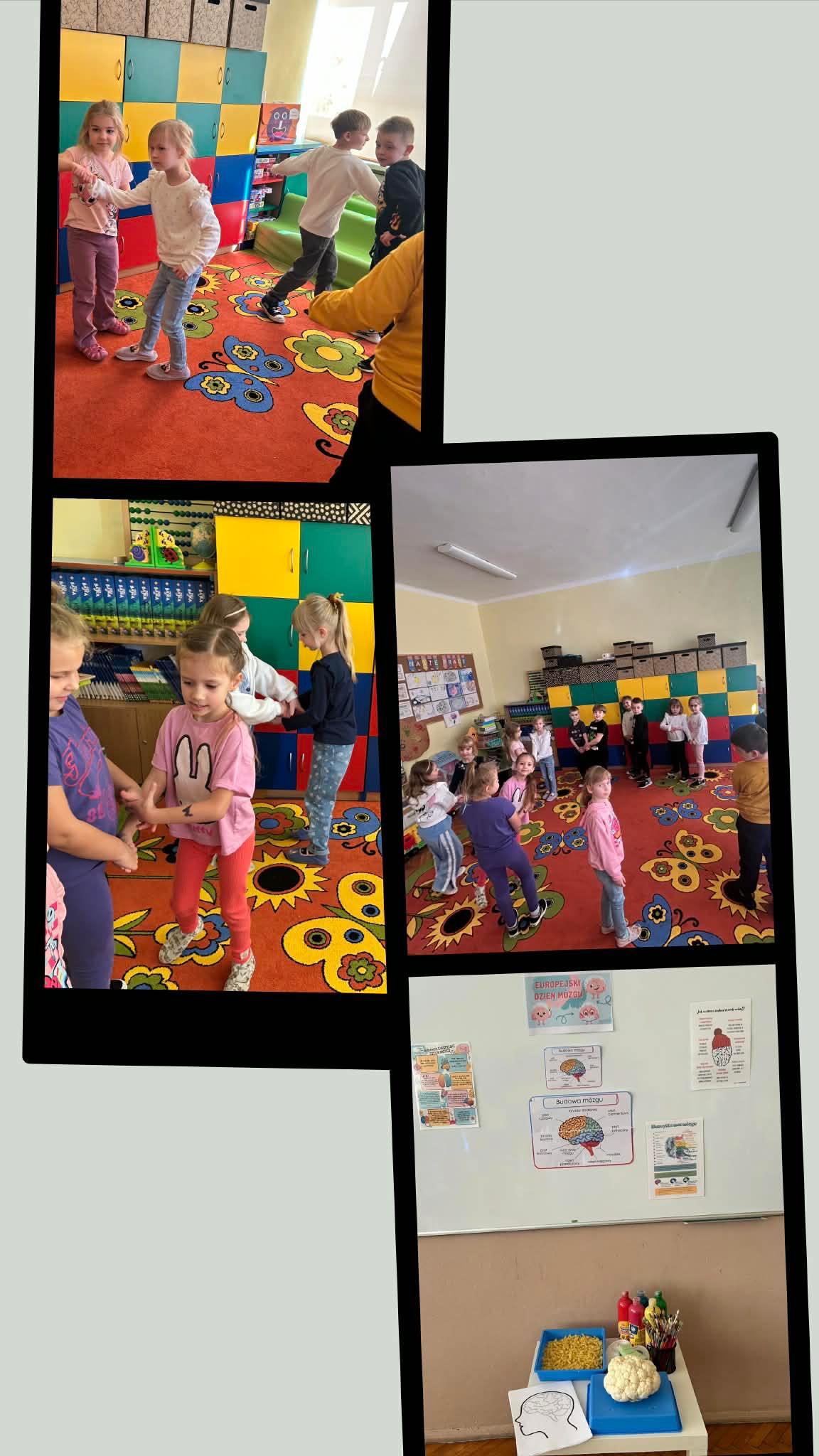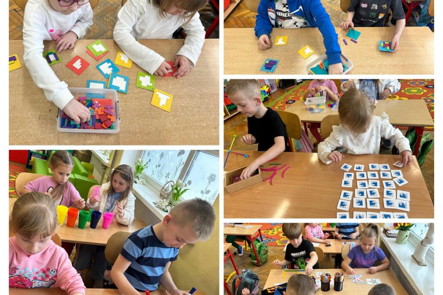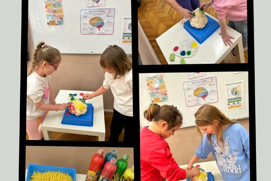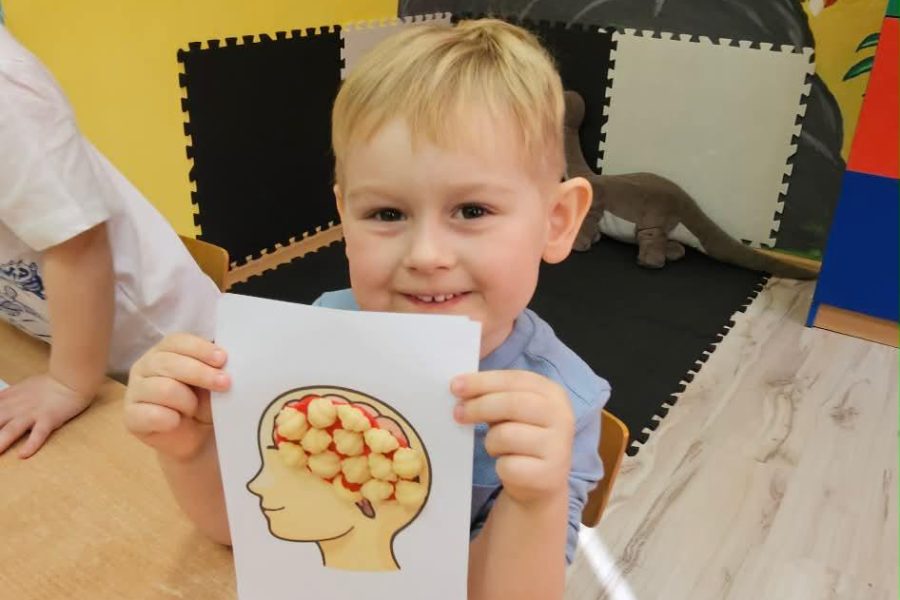 Kreatywne zajęcia w oddziałach przedszkolnych. Podczas zajęć dzieci uczestniczyły w różnorodnych aktywnościach rozwijających pamięć, koncentrację oraz logiczne myślenie. Wykorzystano elementy gimnastyki umysłu oraz kreatywne zabawy edukacyjne, które w przystępny sposób przybliżyły najmłodszym funkcjonowanie mózgu. Zajęcia odbywały się w atmosferze radości i zaangażowania.