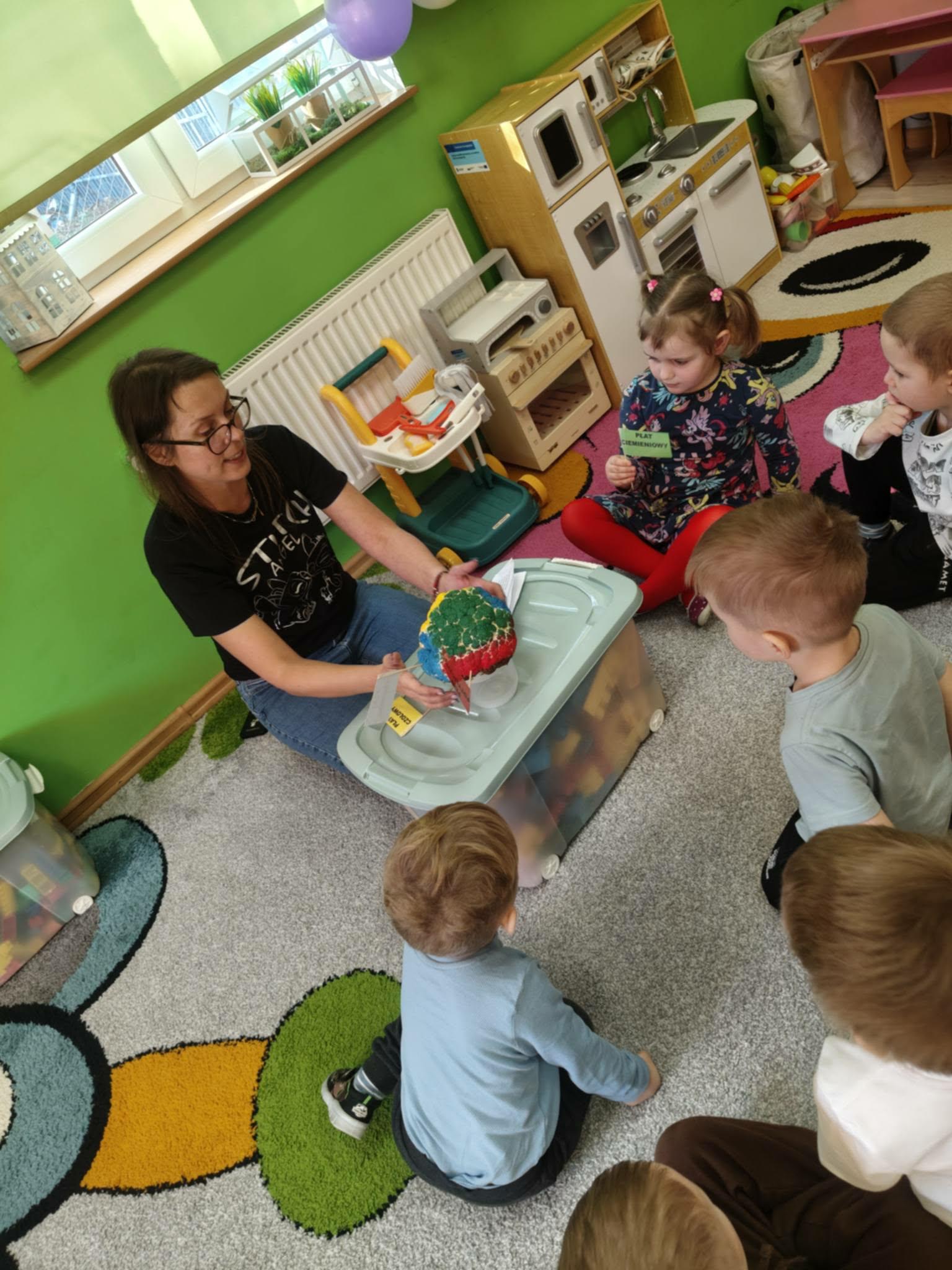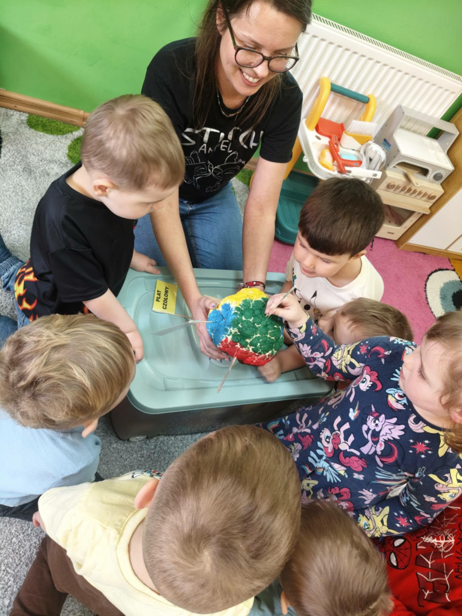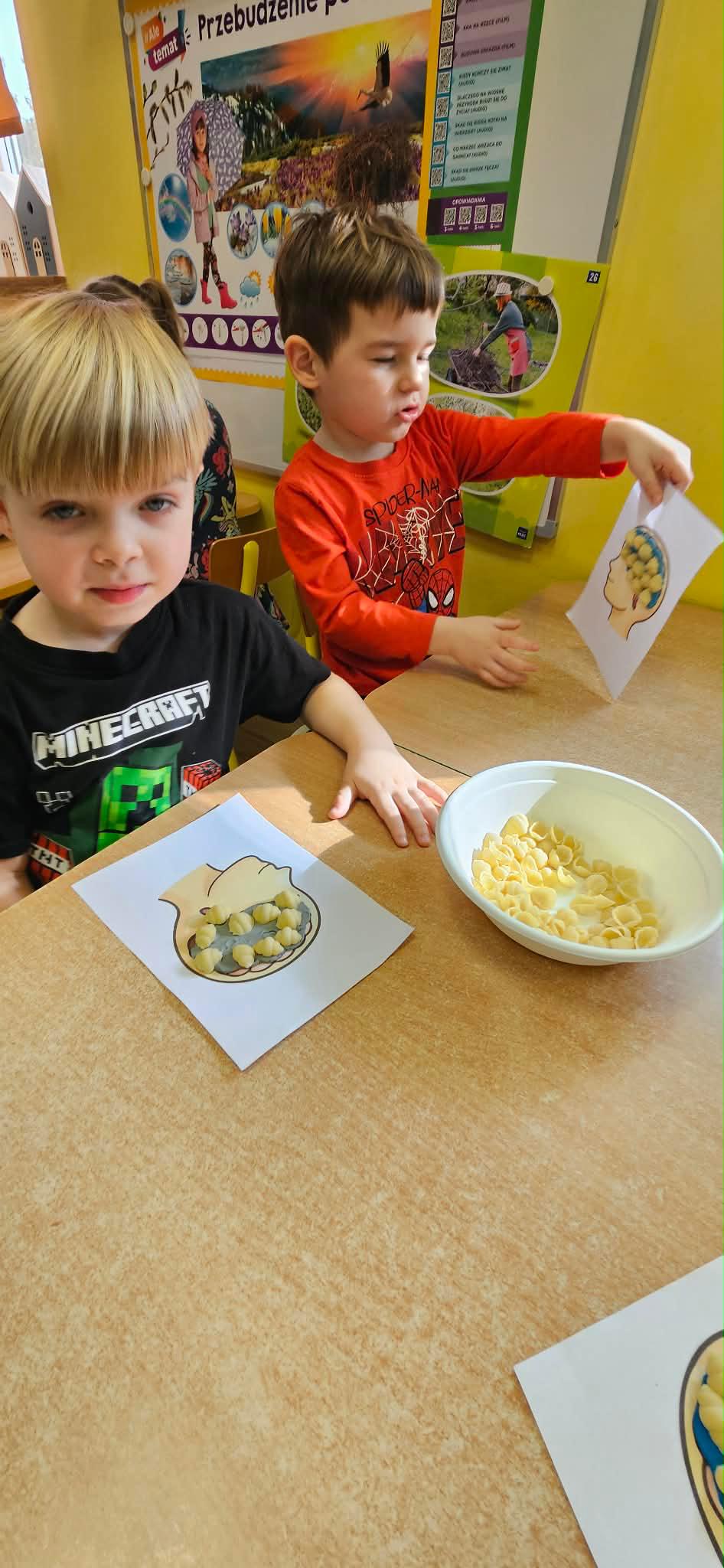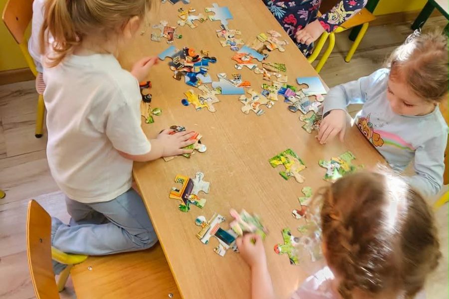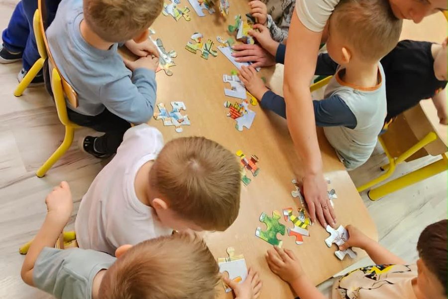 Kreatywne zajęcia w oddziałach przedszkolnych. Podczas zajęć dzieci uczestniczyły w różnorodnych aktywnościach rozwijających pamięć, koncentrację oraz logiczne myślenie. Wykorzystano elementy gimnastyki umysłu oraz kreatywne zabawy edukacyjne, które w przystępny sposób przybliżyły najmłodszym funkcjonowanie mózgu. Zajęcia odbywały się w atmosferze radości i zaangażowania.