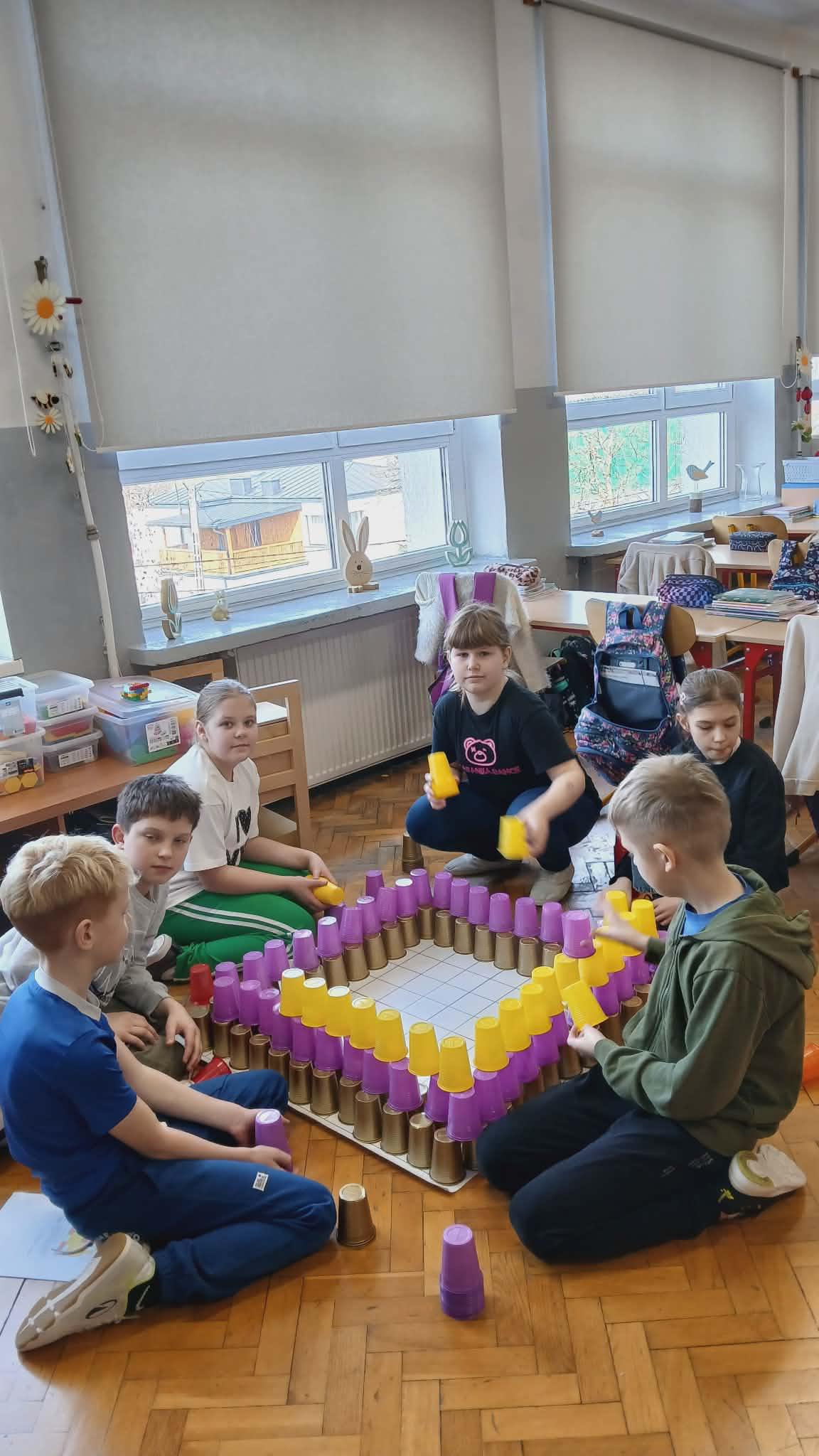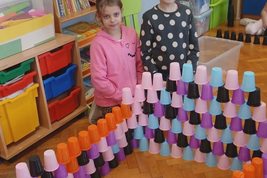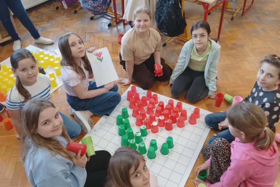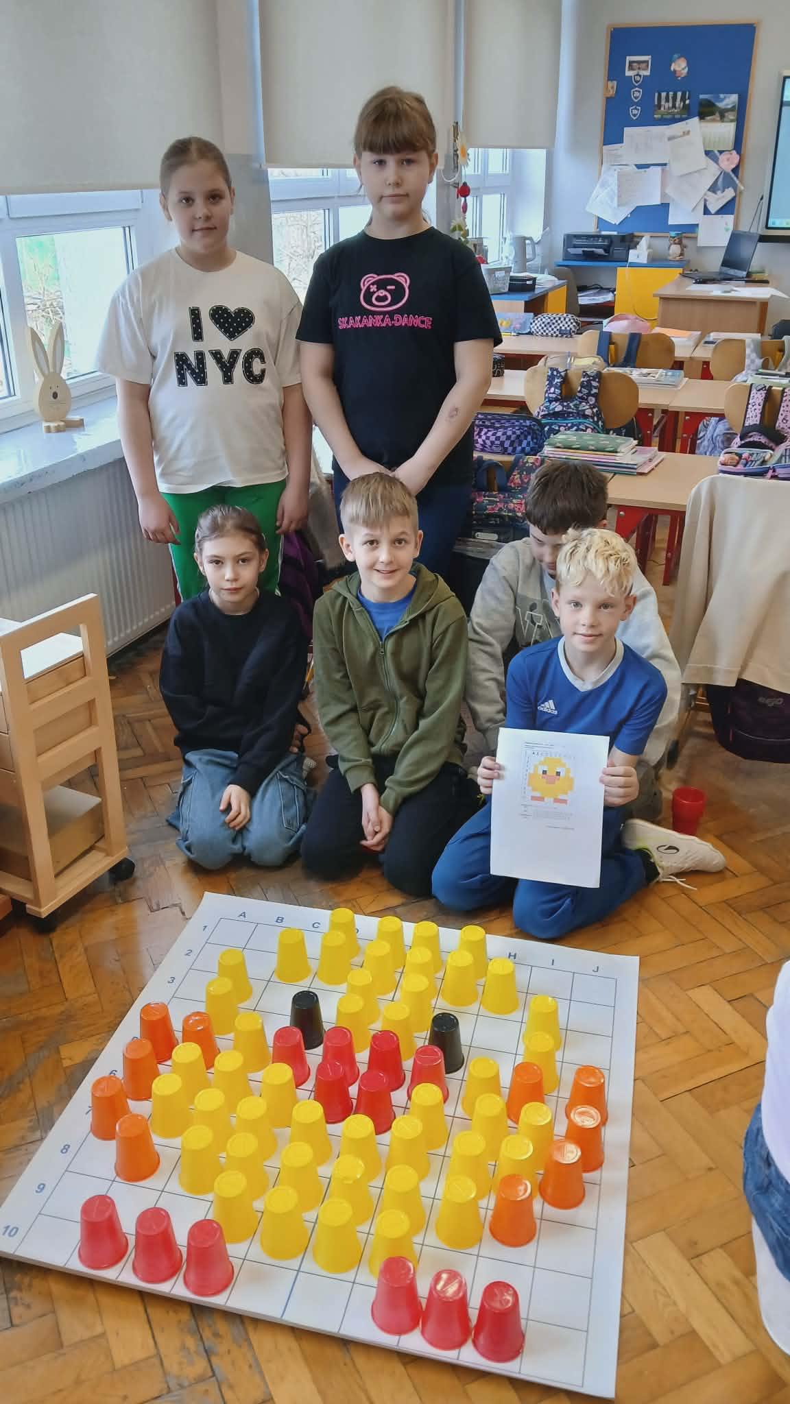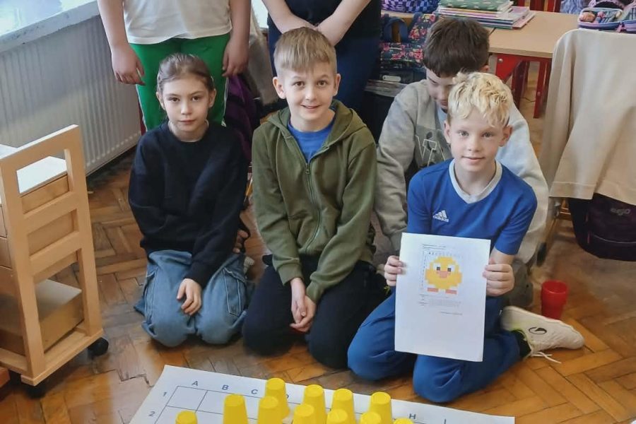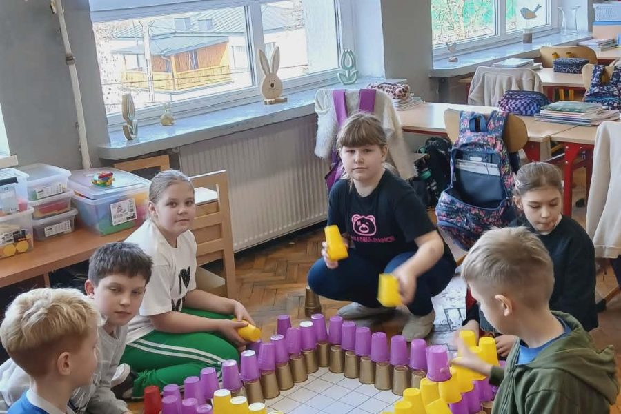 - trening mózgu z wykorzystaniem kolorowych kubeczków (kodowanie). Klasa 3b