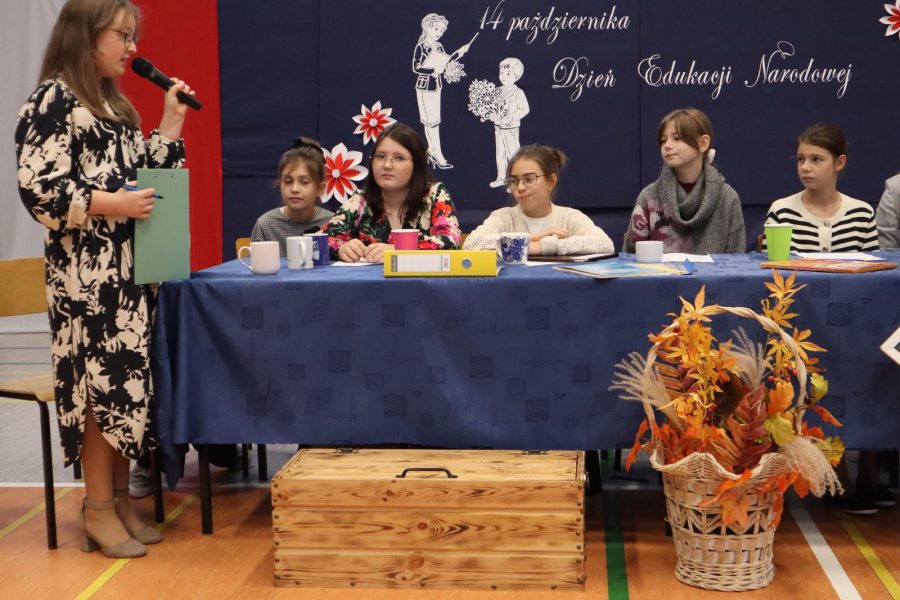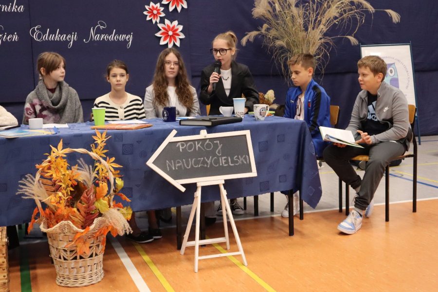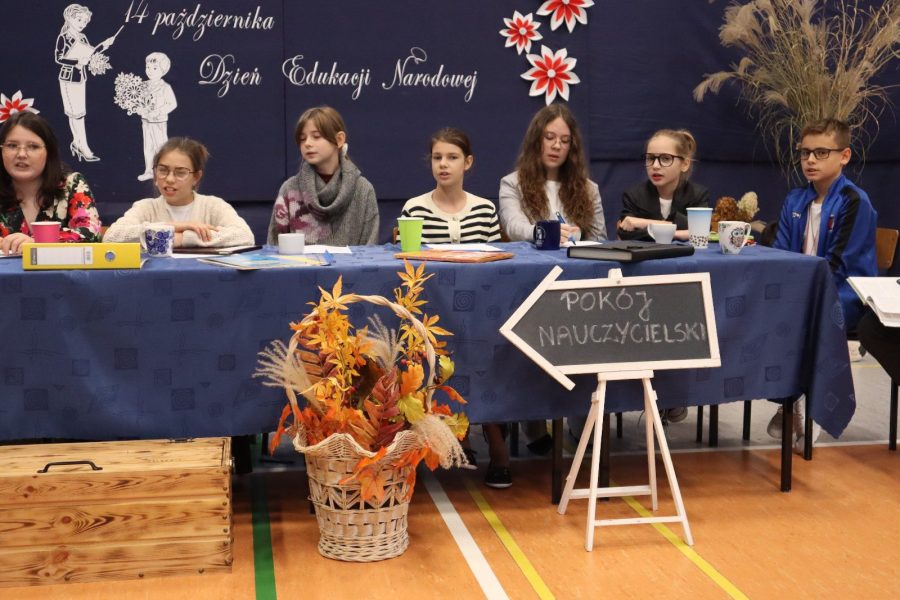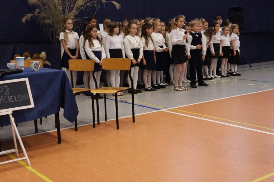 14 października obchodziliśmy Dzień Edukacji Narodowej – święto wszystkich nauczycieli i pracowników oświaty. Z tej okazji uczniowie klas piątych, pod opieką swoich wychowawców, przygotowali część artystyczną. Występ wywołał uśmiechy na twarzach nauczycieli i zgromadzonych gości. Wspaniałości tej imprezy dodał występ chóru szkolnego klas 1-3. Po części artystycznej pani Dyrektor oraz przedstawiciele Rady Rodziców złożyli wszystkim pracownikom szkoły serdeczne życzenia – wielu sukcesów zawodowych, satysfakcji z pracy oraz radości z codziennego kontaktu z uczniami. Uroczystość przebiegła w miłej i radosnej atmosferze, przypominając nam, jak ważna i potrzebna jest praca nauczyciela.