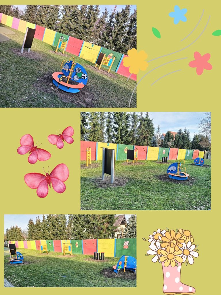 Nowe elementy na przedszkolnym placu zabaw zakupione w ramach projektu „Organizacja zajęć dla dzieci w wieku przedszkolnym”, które umilą pobyt Przedszkolaków podczas wiosennych zabaw na świeżym powietrzu.