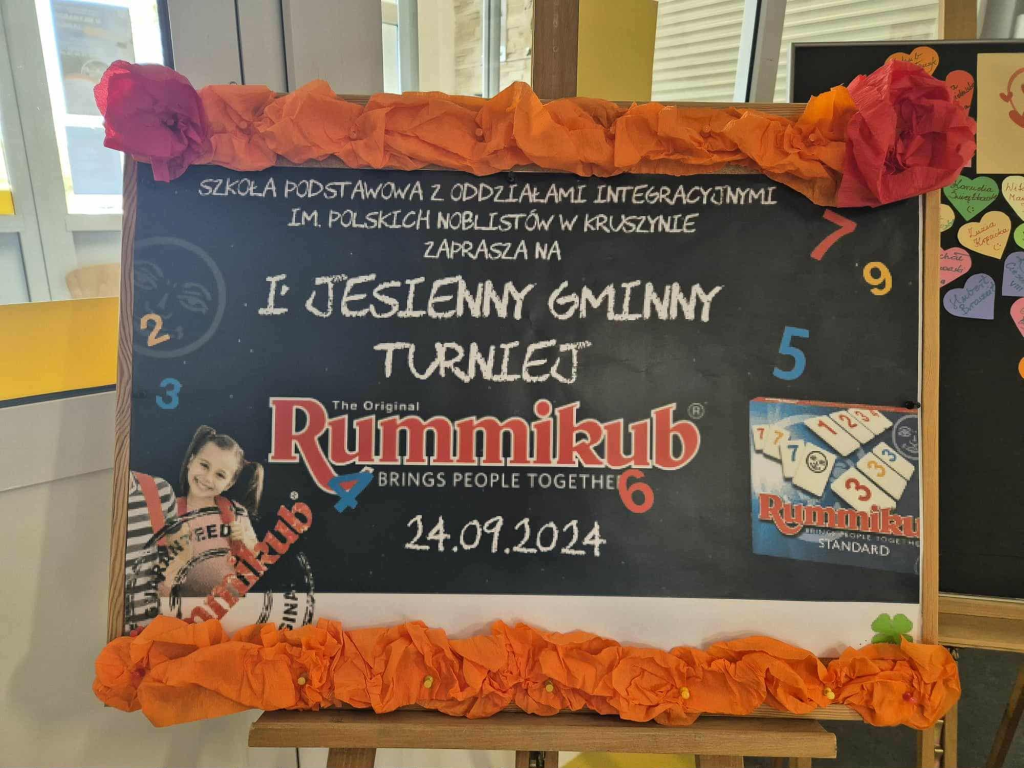 24 września w naszej szkole odbył się I JESIENNY GMINNY TURNIEJ RUMMIKUB. Rummikub to fantastyczna gra planszowa, która wspiera rozwój logicznego myślenia, naukę liczenia oraz rozwija spostrzegawczość. Uczestnicy turnieju pod czujnym okiem trenera RUMMIKUB p. Lidii Rębowskiej zmagali się w rozgrywkach wykorzystując swoje umiejętności logicznego myślenia.