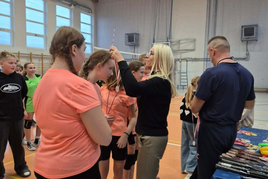 Swoją obecnością zaszczyciła nas Pani Wójt Gminy Włocławek, która z dużym zaangażowaniem obserwowała sportowe zmagania, a na zakończenie osobiście wręczyła medale i puchary wszystkim uczestnikom. Pani Wójt skierowała ciepłe słowa w stronę młodych sportowców, gratulując im pasji i hartu ducha, a także złożyła serdeczne podziękowania dyrektor szkoły oraz nauczycielom wychowania fizycznego za doskonałe przygotowanie i sprawne przeprowadzenie wydarzenia.