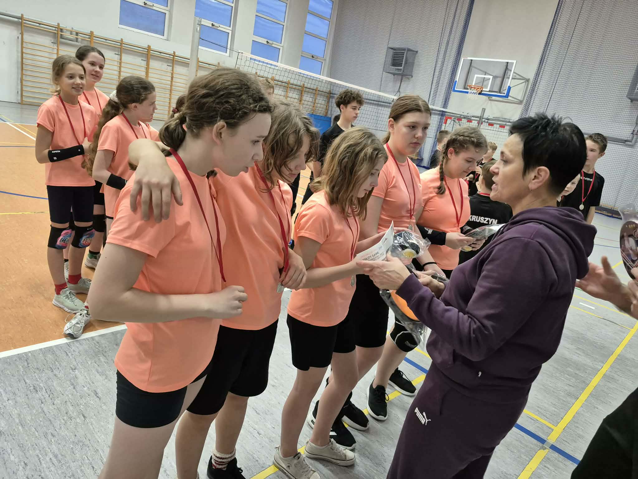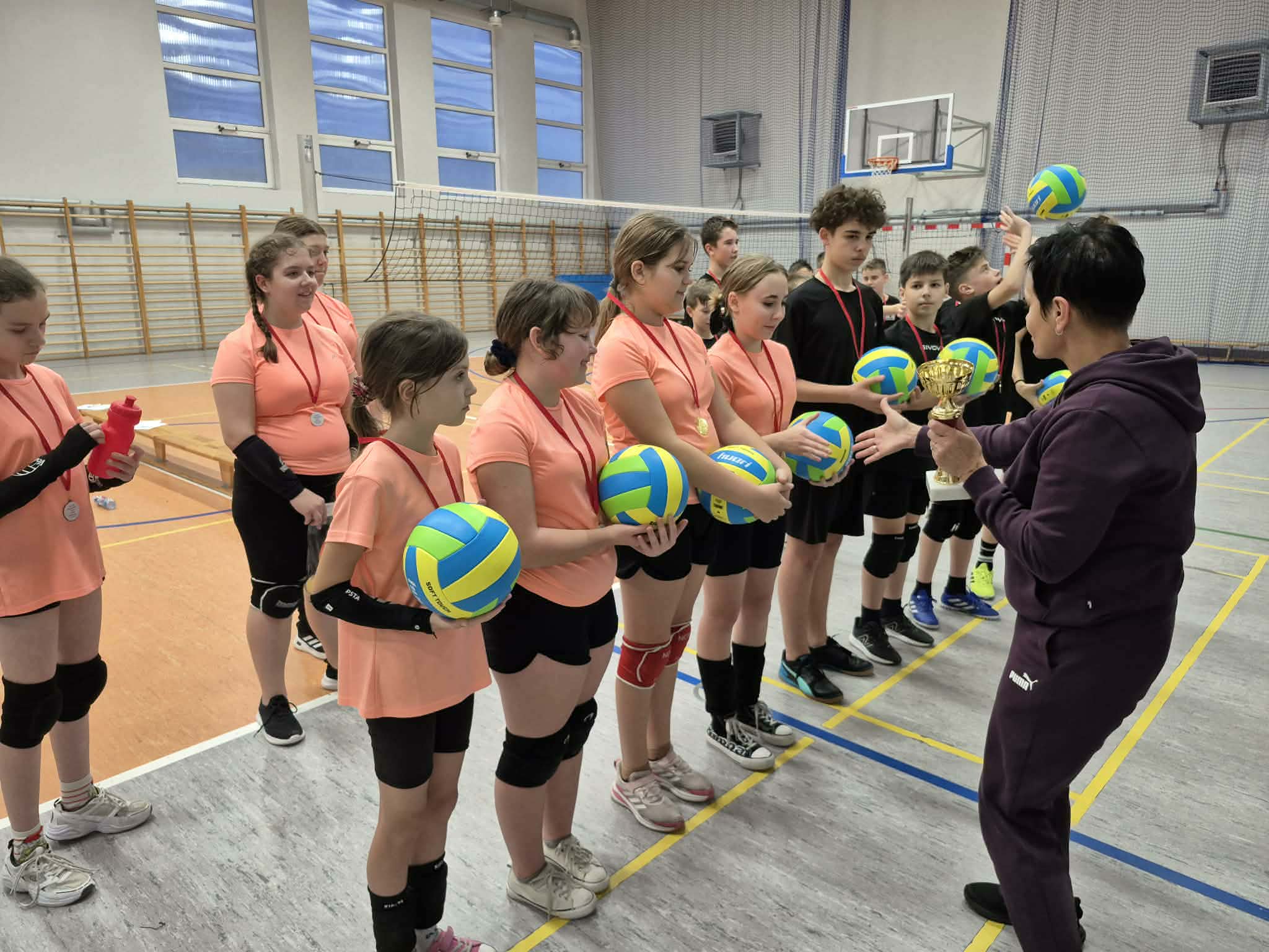 W czwartek, 11 grudnia, hala sportowa naszej szkoły tętniła życiem i sportową energią za sprawą kolejnej edycji Turnieju Piłki Siatkowej Dziewcząt i Chłopców o Puchar Dyrektora Szkoły Podstawowej im. Polskich Noblistów w Kruszynie. Wydarzenie, które na stałe wpisało się w kalendarz naszych sportowych tradycji, zostało zorganizowane przez Uczniowski Klub Sportowy „As Kruszyn”. W rywalizacji wzięli udział uczniowie klas 5, 6 i 7, dla których turniej był nie tylko okazją do sprawdzenia siatkarskich umiejętności, ale przede wszystkim doskonałą lekcją sportowej postawy. Zgodnie z tegorocznym mottem spotkania: „Stawiamy na ruch, propagujemy aktywność fizyczną i integrację!”, głównym celem była dobra zabawa oraz budowanie silnych więzi rówieśniczych poprzez sport.