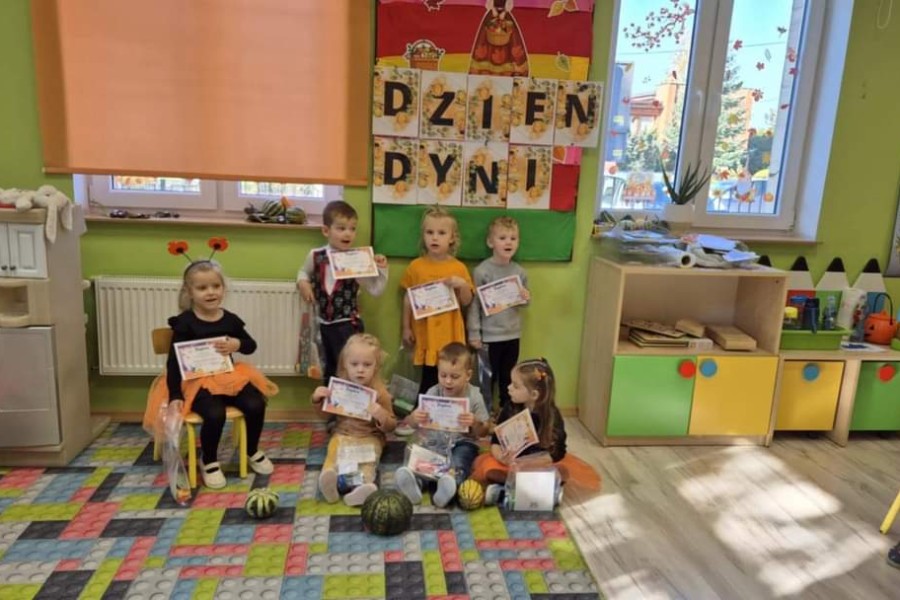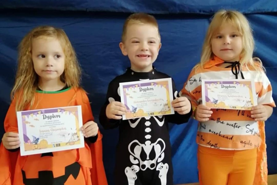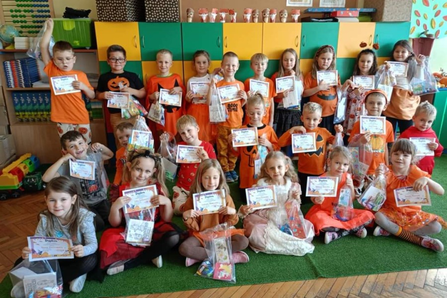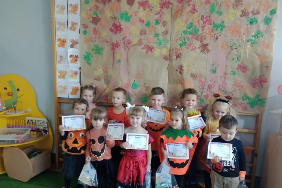 Podczas Balu Dyni zostały wręczone nagrody i dyplomy dla dzieci biorących udziału w konkursie na najpiękniejszą 🎃! Wszystkie prace były piękne i cudowne, dlatego każde dziecko otrzymało 1 miejsce w konkursie! 🥇🥇🥇Serdecznie gratulujemy wszystkim uczestnikom!  Bardzo się cieszymy i jest nam niezmiernie miło, że było Was, aż 46!!! 🥰🎃🎃🎃 Jesteście wspaniali!!!🥇🥇🥇Dziękujemy🥰🎃🎃🎃