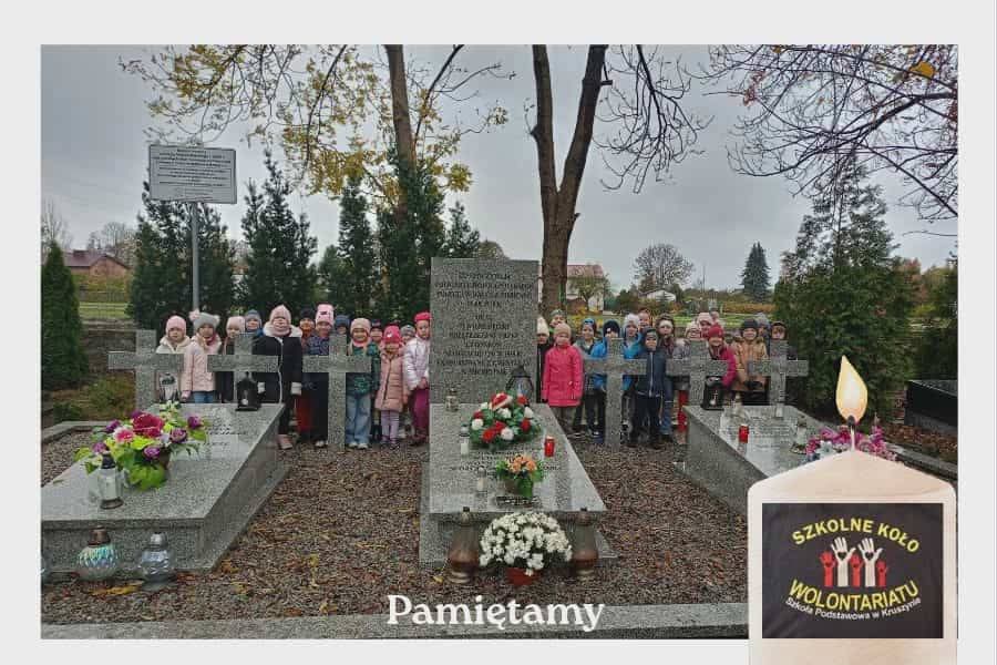 Szacunek do miejsc pamięci – zapalenie zniczy na grobach żołnierzy na cmentarzu parafialnym w Kruszynie.