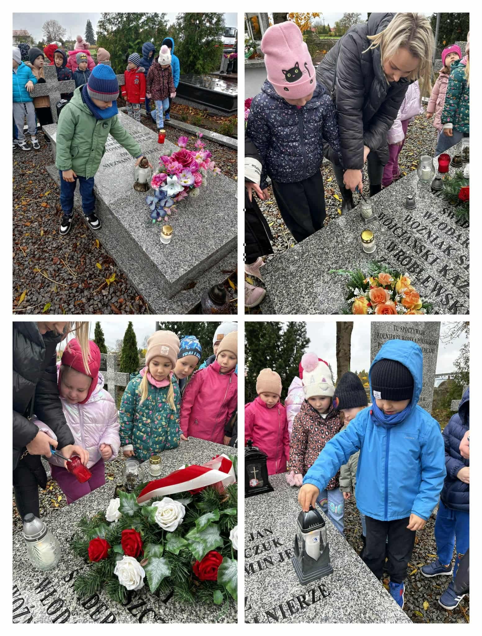 Dzieci z grup 0a i 0b odwiedziły cmentarz, wraz ze Szkolnym Kołem Wolontariatu aby zapalić znicze i uczcić pamięć zmarłych.